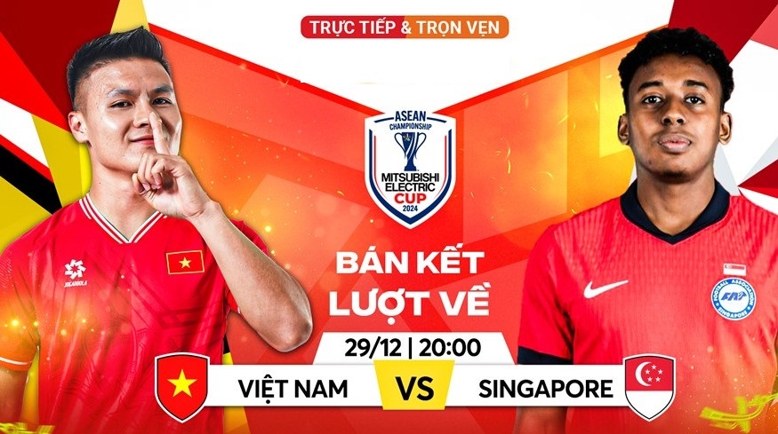 Trực tiếp trận đấu giữa Tuyển Việt Nam và Singapore tại bán kết ASEAN Cup 2024, diễn ra lúc 20h00 (29.12.2024).